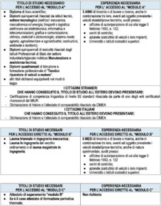 - Modulo A + Modulo B: per poter effettuare i controlli tecnici per i veicoli capaci di contenere al massimo sedici persone compreso il conducente o con massa complessiva a pieno carico fino a 3,5 t