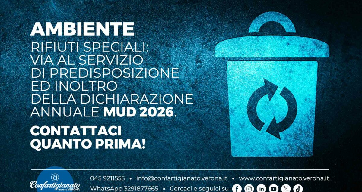 AMBIENTE – Rifiuti speciali: via al servizio di predisposizione e inoltro dichiarazione annuale MUD 2026. Contattaci quanto prima