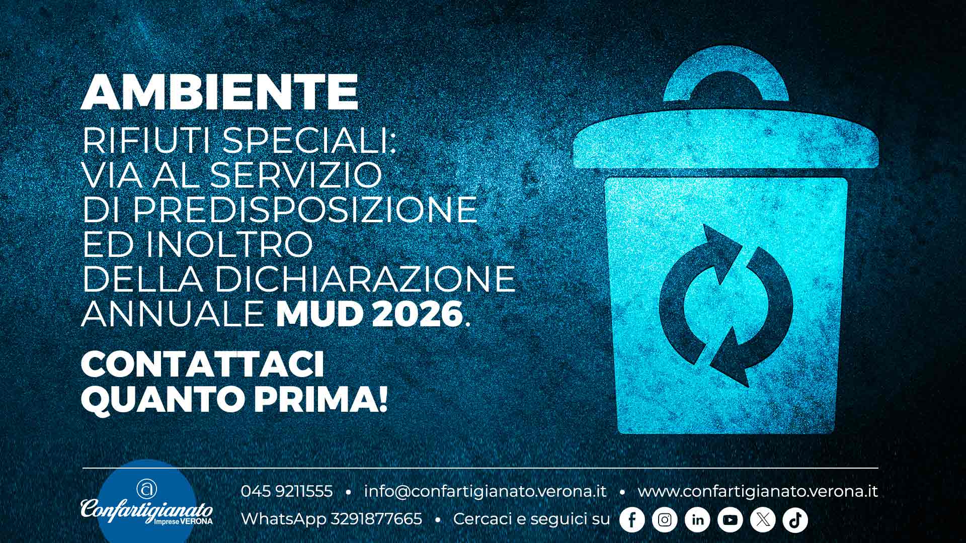 AMBIENTE – Rifiuti speciali: via al servizio di predisposizione e inoltro dichiarazione annuale MUD 2026. Contattaci quanto prima